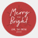 Modern Script Merry & Bright Snowflakes Christmas Runder Aufkleber