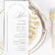 Minimalist wedding menus feature modern script and chic arch frame in black and white, elegant and simple, great for modern classy wedding.