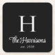 Moderner mit Monogramm schwarzer Untersetzer mit Ihrem Namen in einem stilvollen weißen Skript. Fügen Sie eine erste und das Jahr etabliert in elegante weiße Typografie.