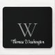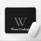 Moderne berufliche schwarze Monogramm-Mousepad mit Ihrer Initial in eleganter Grautypografie und Ihrem Namen in einem stilvollen weißen Drehbuch.