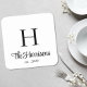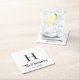 Moderner weißer Untersetzer mit Ihrem Monogramm-Namen in einem stilvollen Skript gezeigt. Fügen Sie einen ersten und das Jahr etablierten oder anderen Text in elegante Serif Typografie.