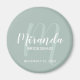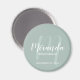 Fügen Sie Ihrer Hochzeit eine persönliche Touch mit einem personalisierten Magneten für Bräuner hinzu. Dieser Magnet zeichnet sich durch den personalisierten Namen der Brautjungfrau aus, der im Stil eines modernen Schriftartes mit weißer Schrift und Monogramm im modernen, schlanken Stil eines modernen Drehbuch-Schriftartes als Hintergrund mit dem Titel und dem Hochzeitdatum in weißem, modernen Sans Serif Schriftart Stil auf dem schlauen grünen Hintergrund. Auch perfekt für Trauzeugin, Mutter der Braut und mehr.