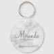Fügen Sie Ihrer Hochzeit eine persönliche Touch mit personalisiertem Schlüsselanhänger einer Brautjungfrau hinzu. Dieser Schlüsselanhänger mit personalisiertem Brautjungweih-Namen im Stil eines modernen, grauen Skriptstils mit Schriftart und Hochzeitdatum in grauem, modernem Sans Serif-Schriftart auf weißem Marmorboden. Auch perfekt für Trauzeugin, Mutter der Braut und mehr. Bitte beachten Sie: Die Marmordetails werden im Kunstwerk simuliert. Bei der Herstellung dieses Produktes wird kein Marmor verwendet