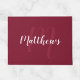Personalisiertes Monogramm und Namensgeschenk mit personalisiertem Familiennamen im modernen, weißen Skript-Schriftart-Stil und Monogramm in hellbordeauxrot modernen Drehbuch-Schriftart-Stil als Hintergrund, auf bordeauxrotem Hintergrund. Perfekt als Geschenk für Neuvermählte, Familiengeschenk, Familienspenstil, Wiedersehen-Gaumen, Hauswärmespeicher und Geschenk für alle besondere Anlass.