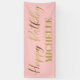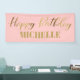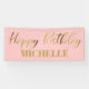 Elegantes, rosa und goldenes Banner "Zum Geburtstag glücklich" Party, das mit dem Namen des Ehrengast abgestimmt ist.