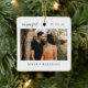 Modern Script Rustic Engagement Photo Keepsake Keramikornament