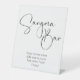 Dieses minimalistische Skript Sangria Bar Pedestal Sign ist die perfekte Art, um Ihr Brautparty im Stil zu feiern. Mit eleganter und moderner Typografie. Sie können dieses Design personalisieren, indem Sie auf "Diese Vorlage personalisieren" klicken oder wenn Sie den Schriftart, die Hintergrundfarben ändern oder die Designelemente anders anordnen möchten, klicken Sie auf "Bearbeiten mit dem Entwurfswerkzeug".