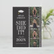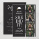 The front of this beautifully designed graduation invitation showcases four of your favorite photos of the graduate, thoughtfully arranged in a stylish photo reel layout. Paired with the sweet and celebratory message, “She Did It!”, this design captures the pride, joy, and excitement of such a meaningful milestone, creating a heartfelt and unforgettable first impression for your guests. The back of the card is fully customizable, giving you plenty of space to include all of your graduation party details, from the date and time to the location and RSVP information. Designed to be both elegant and personal, this invitation is the perfect way to celebrate your graduate’s achievement while sharing the moment with family and friends.