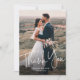 Ein Modern Script Simple Wedding Foto Dankeschön You Card mit handgeschriebenem Schriftart, komplettes Portrait Foto auf der Vorderseite mit Namen und Hochzeitsdetails. Der Rücken hat ein zweites Foto mit einer Danksagung von den Neuvermählten. Klicken Sie auf die Schaltfläche Bearbeiten, um dieses Design anzupassen.