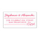 Erstellen Sie mit diesen Vorlagen eigene, individuell angepasste Briefmarke für moderne Script-Typografie mit Namen & Rücksendeadresse. Dieses Design enthält Ihren Namen und Zip in einem niedlichen, handgeschriebenen Skript-Schriftart mit Ihrer Rücksendeadresse in einem einfachen serifenlosen Sans-Schriftart.