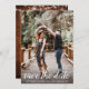 Moderne Script Save the Date Verlobung Ankündigung Foto-Karte - Rustikales Holz Zurück mit Mason Jar String Lights