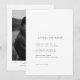 A timeless black-and-white palette creates an immediate sense of elegance. The front features a sophisticated serif typography layout, thoughtfully composed with generous white space to deliver a clean, editorial look. On the back, your favorite engagement photo is beautifully framed by a crisp white border, transforming the invitation into a cherished keepsake that tells your love story.