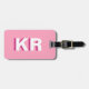 Mit Monogramm Gepäckanhänger mit rosa und weißem Blockschatten. Ein stilvolles Tag ideal für Gepäck, Koffer, Laptop-Tasche, Golftasche und vieles mehr.