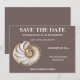 Announce your special day in elegant, modern style with this 3D shell-themed save the date card. Featuring a beautifully detailed spiral shell design with soft neutral ivory tones and luxurious gold accents set against a taupe background, this design creates a refined and memorable first impression.