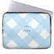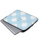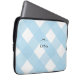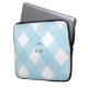 Modernes 13" Neopren Laptop Gehäuse mit schwarzem Bogen auf hellblauem Gingham Büffel Karo Hintergrund. Personalisieren Sie mit jedem Text, den Sie auf der Vorderseite mögen. Einfach zu personalisieren, indem Sie oben auf den blauen "Personalisieren"-Button klicken.