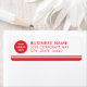 Diese kundenspezifischen Rücksendeadressen-Aufkleber mit weißem Firmenlogo zeichnen sich durch Ihr berufliches Firmenlogo aus. Fügen Sie einfach Ihr Firmenlogo zum runden rot-weißen Platzhalter-Bild hinzu und personalisieren Sie es mit Ihrem Firmennamen und Ihrer Firmenadresse.