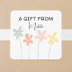 Modern Simple Cute Girly Floral "A Gift From" Personalized Add Your Name Square Sticker