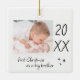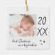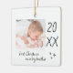 Modern "first Christmas as a big brother" ceramic ornament with a simple design featuring the year and a custom photo. Double sided.
