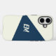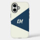 Coole moderne geometrisch blaue und cremefarbene iPhone Gehäuse mit Monogramm.