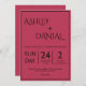 Die zeitgenössische Hochzeitseinladung mit atemberaubender schwarzer Kalligraphie auf einem magentafarbenen Hintergrund mit schicken Rahmen. Diese Einladung strahlt Eleganz und Eleganz aus und macht sie zur perfekten Wahl für Ihren besonderen Tag. Das reiche schwarze Kalligraphieskript wird mit einer kühnen magentafarbenen Kulisse kombiniert und schafft so ein einzigartiges und unvergessliches Design. Diese Einladung ist auf hochwertigem Karton gedruckt und kommt in Ihre Wahl von Größe und Papiertyp, um eine luxuriöse und personalisierte Touch zu gewährleisten. Ob Sie nach einem klassischen und zeitlosen Look oder einer modernen Drehung suchen, diese Einladung wird Ihre Gäste beeindrucken und den Ton für ein unvergessliches Fest Set geben.