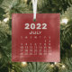 Modern Simple Red July 2022 Month Calendar Glass Ornament