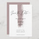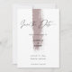Moderne und zeitgenössische Save the Date Vorlage mit einem schlichten Design mit Terrakotta Sand Pinselstrich in der Mitte auf weißem Hintergrund. "Save the Date" ist in einem handgeschriebenen Kalligraphie-Schriftart geschrieben. Lass deine Hochzeitsdetails wie Namen, Datum und Lage in einem modernen und eleganten Sans Serif Schriftart. Die Rückseite ist eine solide, weiche Sandfarbe, die dem Cotta-Pinselstrich auf der Vorderseite Ihrer Save the Date Einladungskarte entspricht. Dieses Design ist einzigartig und zeitgemäß.