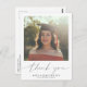 Einfaches modernes Abschluss Foto bedankt sich bei Postcard mit minimalistischer Schriftzeichen-Kalligraphie und DANKE DANK unter Ihrem bevorzugten Senior Foto. Benutzerdefinierte vorgedruckte Nachricht auf der Rückseite oder verließ leer, um eine handschriftliche Notiz zu schreiben.
