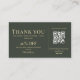 A modern small business thank you discount card featuring a dark olive green layout with a QR review section, thank you message, discount offer, and coupon code. Perfect for packaging inserts, order thank you cards, and customer appreciation. This editable design helps encourage repeat purchases, strengthen customer loyalty, and create a polished branded unboxing experience.