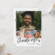 Moderne Abschlussfeier Einladung personalisiert mit vier Fotos des Absolventen in einer Collage, in der Sie sie während der Kindheit und ihrer 10 Jahre zeigen können. Ankündigung und Party Einladung von Abschlüssen mit Fotos, die den Großteil der Einladung mit dem Namen des Absolventen und das Jahr in gepflegten modernen Briefen abdecken. Abschluss in einem modernen Pinselskript neben einer kleinen Graduationskappe. Auf der Rückseite Feiern wir in einem passenden Pinselskript zusammen mit Ihrer Einladung in einem sauberen Layout.