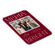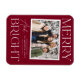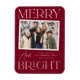 Moderner Foto-Magnet mit Ihrem horizontalen Foto in einem weißen Sofortrahmen mit Foto. Der Satz "Merry and Bright" wird in weißer Schrift mit festlichem Himmelsbeerhintergrund dargestellt. Personalisieren Sie den Weihnachtsmagneten des Fotos mit Ihrem individuellen Gruß, Familiennamen und Jahr.