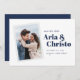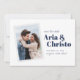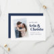 Ein lässiges und modernes Save the Date-Design mit einem vertikalen Foto mit einem weißen Schnappschuss-Rahmen, diagonal platziert mit Ihren Hochzeitsdetails in marineblau modernen Serifen und handgeschriebenen Schriftzeichen.