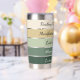 This tumbler design features a clean, vintage Saint Patrick’s Day palette arranged in smooth horizontal bands—from emerald at the base up to soft cream at the top. The colors create a fresh, trendy look: a dark green foundation, layered with medium and bright vintage shamrock greens, accented by a warm golden stripe, and finished with a soft, glowing cream tone. The palette feels uplifting, stylish, and lightly festive—perfect for a chic St. Patrick’s aesthetic. Up to 5 phrases can be placed on the tumbler in a sleek, minimal, modern typeface for a fresh and trendy look.