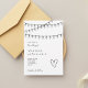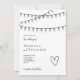 Set the tone for a relaxed yet romantic celebration with this modern string lights wedding invitation. Featuring delicate hand-drawn hanging lights draped across the top and a simple heart illustration, this design captures the charm of an intimate evening gathering under the glow of warm lights.