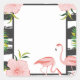 Niedlicher kleiner Druck mit unordentlichen schwarz-weißen Streifen und rosa Flamingos und Blume.