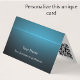 Easily customize this unique modern business card template with your name, contact details and QR code for a great calling card. This stylish black and blue folded business card with clear simple white script can be edited for your purposes. Add your name and title or business on the front. On the inside is a place for your website QR code and a hand written note. On the back is a place for more custom text. You could add a tagline or services offered. Be sure to personalize the back with the company address, telephone number, email or website address. I created this unique design with a turquoise blue light burst on a black background. The blue gradient looks cool and trendy. It would be a great business card template for an engineer, electrician, energy or solar consultant, computer technology business, tech sales, pastor, IT or web designer, or social media business.