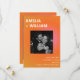 This wedding save the date card pairs a bold orange and pink sunset gradient with a candid engagement photo for a modern, high-energy announcement. The front features a strong typographic layout with your photo centered, while the back includes space for a second image for a full storytelling moment. The clean design and vibrant summer palette feel confident, stylish, and effortlessly contemporary. A beautiful choice for couples planning a city wedding, rooftop celebration, or modern summer event.