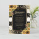 Modern Sunflower Gold Black White Quinceañera Einladung