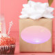 Sonnenuntergang in rosa und lila Farbtönen. Personalisieren Sie es mit einem schönen hellgelben Monogramm, das mit dem Farbverlauf pastellfarben.