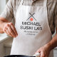 Clean, modern “Sushi Lab” logo featuring crossed chopsticks and a stylized salmon roll, perfect for serious home chefs and sushi lovers. The name line is fully editable so you can switch “Michael” to any chef in the family, and you can adjust the tagline text to match your cooking style. Ideal for sushi nights, Japanese-themed dinner parties, or a fun foodie gift for him. Great idea for birthdays, Father’s Day, or housewarming presents for anyone mastering the art of rollcraft.