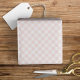 Dieses einfache, aber stilvolle Packpapier-Design zeichnet sich durch einen süß rosa Gingham Hintergrund aus. In der Sammlung sind Koordinationsgegenstände verfügbar.
