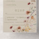 Modern Tan Wildblume Bouquet Abendessen All In One Einladung