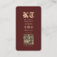 Modern Tattoo Artist Monogram Gold Dark Red QR Visitenkarte