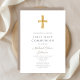 Personalisierte moderne Taupe kreuzen Boy Heilige Kommunion Einladung.