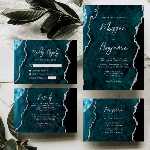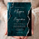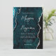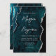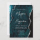 Modern Teal Blue Agate Silver Script Wedding Einladung
