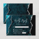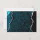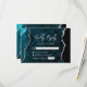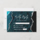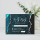 Modern Teal Blue Agate Silver Script Wedding RSVP Karte