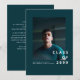 This modern graduation announcement features a bold teal color palette paired with clean, contemporary typography for a confident and polished look. The strong visual contrast keeps the design striking while remaining timeless and refined.