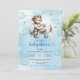 Modern Teddy Bear Pilot Blue Brown Boy Shower Einladung
