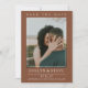 Announce your wedding date with this modern terracotta save the date featuring a clean, minimal layout and elegant serif typography. Designed to highlight your photo while maintaining a warm, earthy aesthetic, this card is perfect for modern, boho, desert, or fall wedding themes.