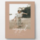 Modern Terracotta Script "Engaged" Couple Photo Plaque. Personalize this elegant and minimalistic custom photo plaque with your names, engagement date, and a favorite engagement photo. Makes a keepsake for newly engaged couples.