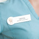 Custom Dental Assistant Name Tag featuring a modern abstract tooth illustration. Name in a serif font, title in a sans serif font. Fonts are in shades of grey.